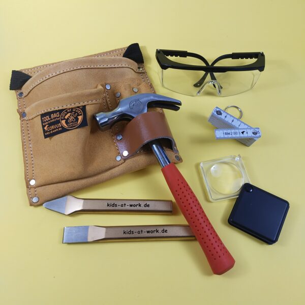 - Cinturón de piel, resistente, con bolsillos de piel para transportar las herramientas